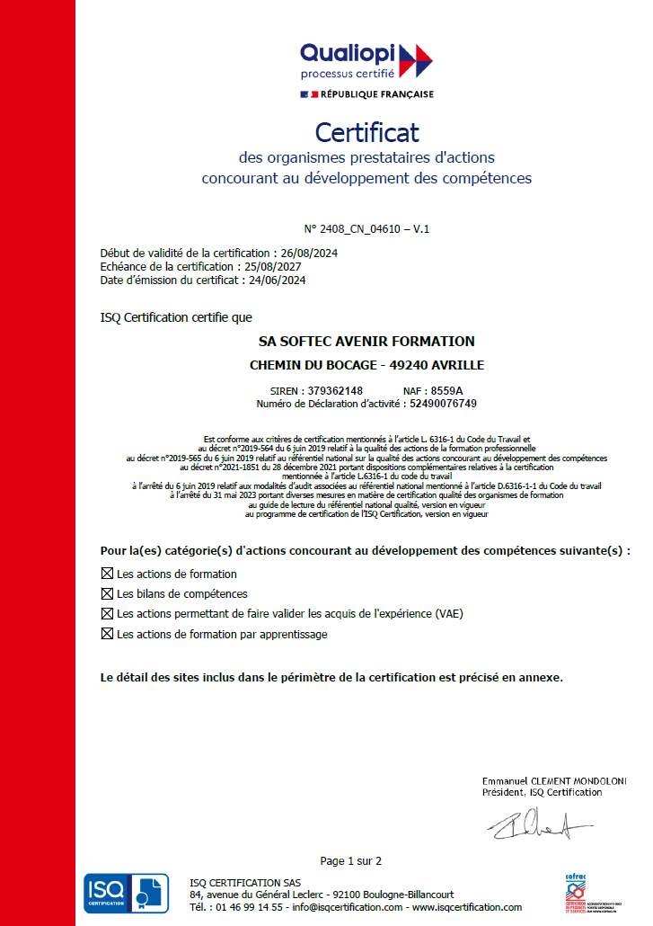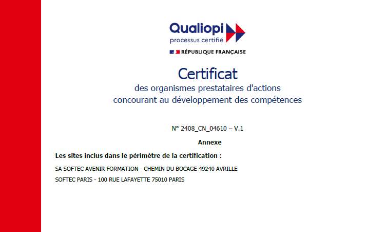 Softec a obtenu le Label QUALIOPI (2408_CN_04610-V.1)